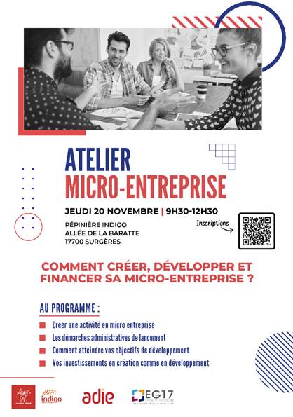 La pépinière d’entreprises Indigo de la Communauté de Communes Aunis Sud et ses partenaires, Espace Gestion et ADIE, organisent le :