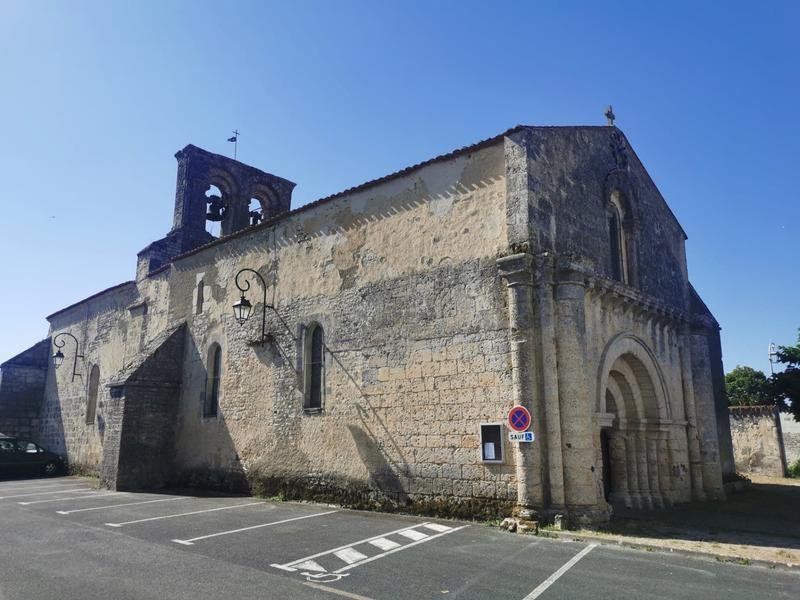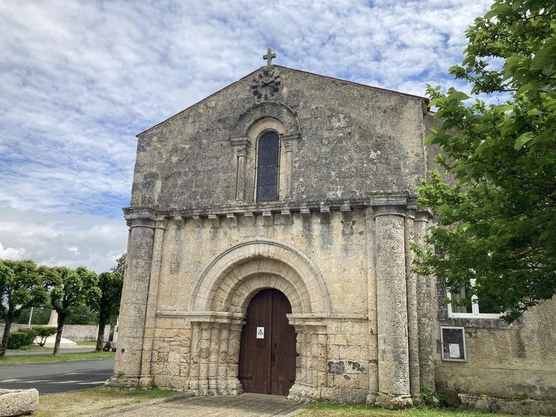 La façade du XIIème siècle est percée d’un portail en plein cintre à trois voussures nues reposant sur un nombre deux fois supérieur de colonnettes. L'emploi d’un calcaire coquillé a pratiquement interdit toute sculpture.