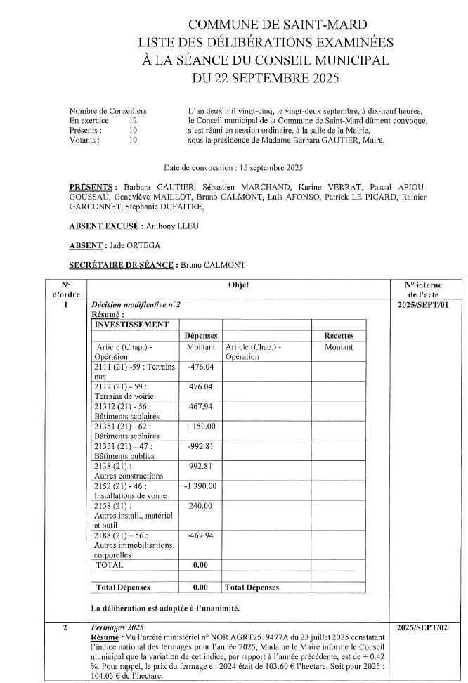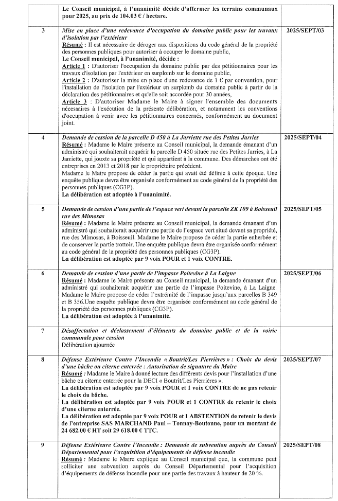 Veuillez trouver ci-dessous la liste des délibérations examinées à la séance du Conseil municipal du 22 septembre 2025.