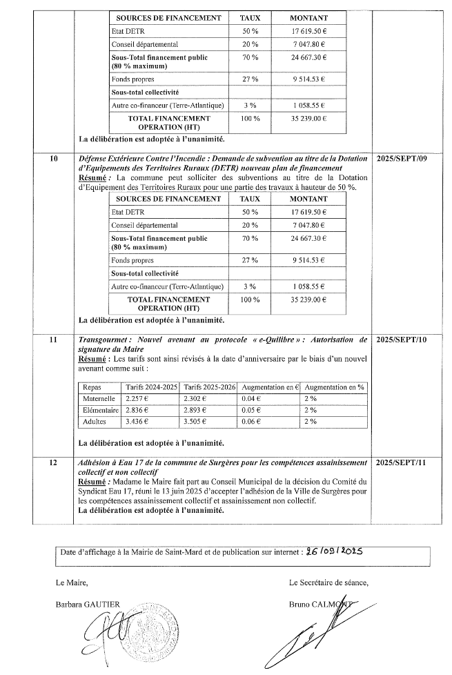 Liste des délibérations du 22.09.2025